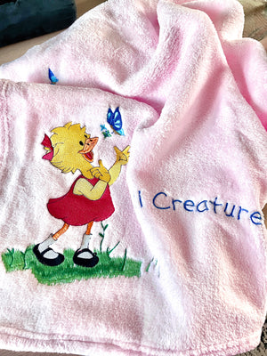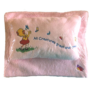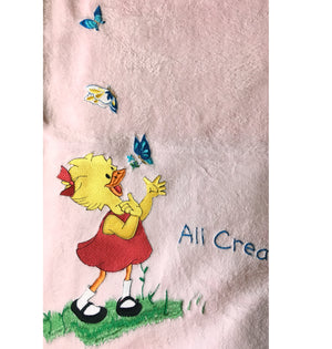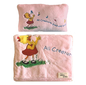 Conjunto de manta y almohada de lujo para bebé con bordados de Suzy's Zoo, patos y mariposas, de 30 x 45 pulgadas, de color rosa, para regalo de baby shower