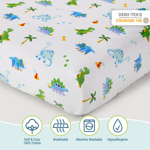 Sábanas ajustables de algodón para cuna de bebé con diseño de dinosaurios, paquete de 2