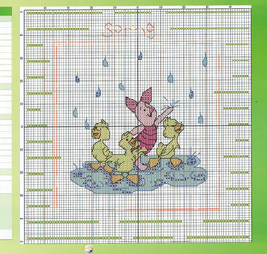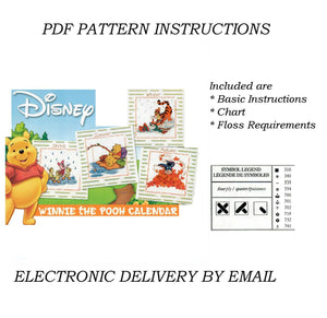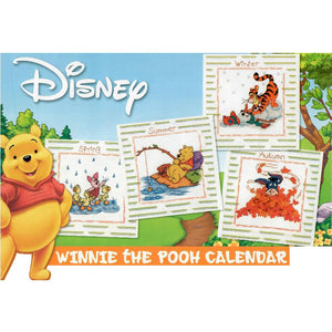 Calendario vintage de Disney Winnie The Pooh con las estaciones, muestrario de patrones en punto de cruz en formato PDF, instrucciones de Designer Stitches 2006