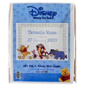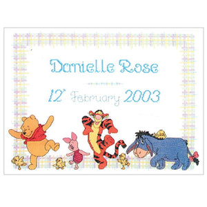 • Punto de cruz con anuncio de nacimiento de Winnie The Pooh y sus amigos de Disney