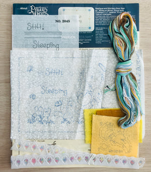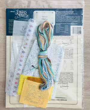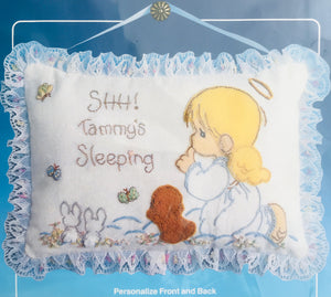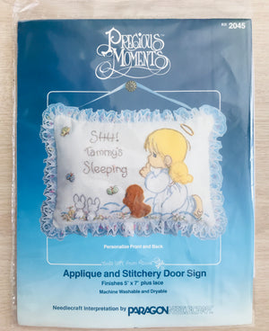 Letrero para puerta con apliques y costura de Precious Moments, ángel bebé durmiendo, para colgar en la pared, 5 x 7 pulgadas