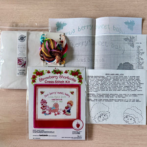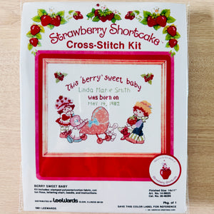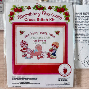 Vintage New Strawberry Shortcake 'Berry Sweet Baby' Counted Cross Stitch Kit 14" x 11" Keepsake Birth Announcement Record Sampler 1981