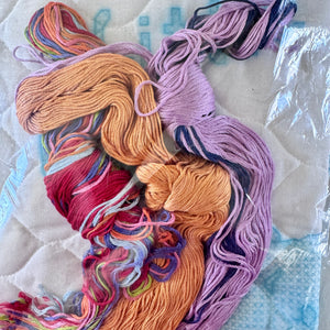 • Contenido: Edredón estampado, acolchado y preacabado 50% algodón/50% poliéster (guata 100% poliéster), hilo de algodón, aguja, gráfico, instrucciones en inglés y francés.