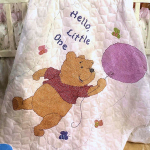 Nuevo kit de edredón vintage para cuna de bebé con globo de Disney Winnie The Pooh, manta de recuerdo de Hello Little One con punto de cruz estampado o instrucciones de patrón en PDF de 34" x 43"