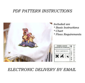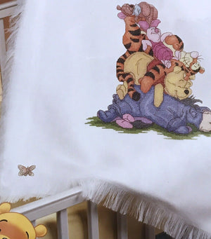 Kit de afgano para bebé de punto de cruz con diseño de oso Winnie The Pooh de Walt Disney vintage o instrucciones con patrón en PDF, manta de regalo de recuerdo de 34" x 43" Eeyore Tigger Piglet Roo