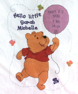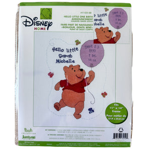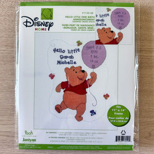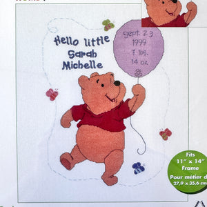 Kit de anuncio de nacimiento de bebé en punto de cruz con globo de Disney Winnie The Pooh con Hello Little One o patrón en PDF con instrucciones y registro de recuerdo de 11" x 14" 1132-50