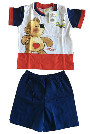Nuevo conjunto de 2 piezas de Little Suzy's Zoo Boof Bear, camiseta y pantalones cortos para bebé niño/niño pequeño, rojo, azul marino, blanco, vintage