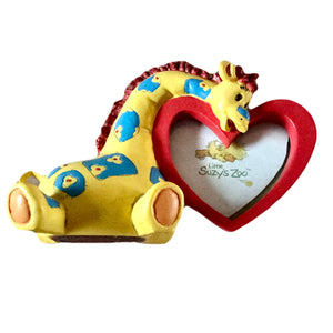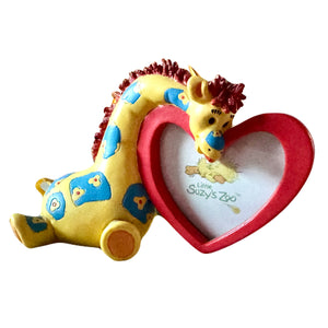 Marco de fotos de recuerdo de bebé con parches del zoológico Little Suzy's, jirafa y corazón rojo, para fotos de 2,5" x 2,5"