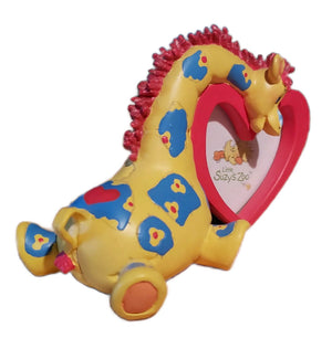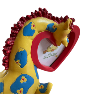 Este marco de fotos de recuerdo de Little Suzy's Zoo presenta a la adorable jirafa Patches sosteniendo un minimarco de fotos en forma de corazón donde puedes exhibir una foto favorita de tu pequeño. Un gran regalo para baby shower para un bebé recién nacido o una futura mamá.