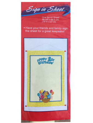 Hoja de recuerdo para firmar el primer cumpleaños del bebé con el texto "Animales del Arca de Noé", 19 x 27 pulgadas