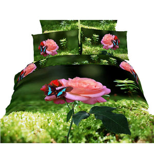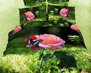 Juego de cama con funda de edredón tamaño king con foto de mariposa real de lujo y rosa rosa, conjunto de diseñador