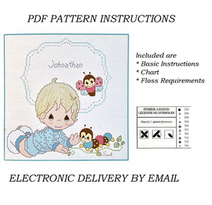 Instrucciones del patrón de punto de cruz en PDF con el nombre personalizado de Precious Moments para bebé niño Wiggles and Giggles Hug'n Cuddle Bugs 2012