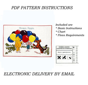 Kit de punto de cruz clásico vintage de Winnie The Pooh 'Pooh's Balloons' o patrón con gráfico en PDF Instrucciones Pooh Piglet, Tigger Catálogo Walt Disney 14091 Habitación infantil o infantil personalizada