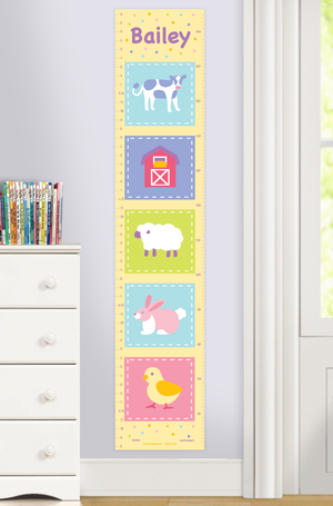 Cuadro de crecimiento de altura para niños personalizado con animales de granja en lienzo o autoadhesivo