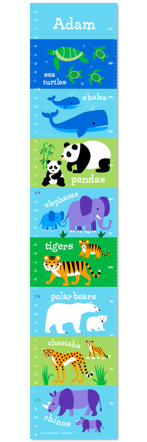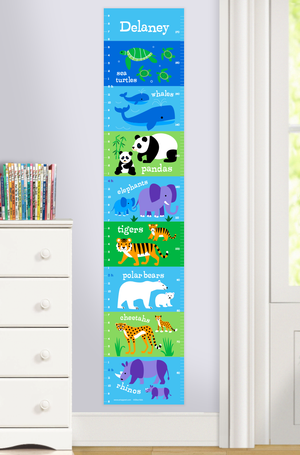 Cuadro de crecimiento de altura para niños personalizado con animales salvajes en peligro de extinción, autoadhesivo o lienzo