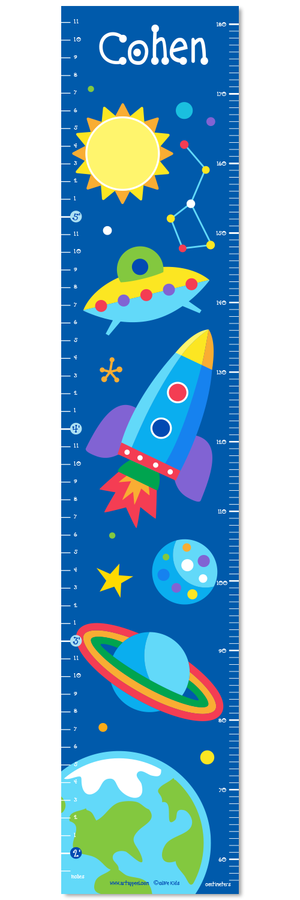 Tabla de crecimiento personalizada de altura de planetas y cohetes del espacio exterior de galaxias autoadhesiva o lienzo