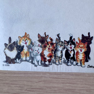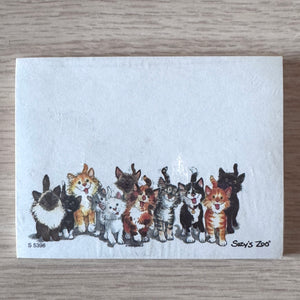 Estos adorables blocs de notas adhesivas en miniatura tienen gráficos de Suzy Spafford que muestran un perro feliz con una pelota en la boca, feliz y tierno como nunca, y un texto "¡Guau!" encima. Se llama Play Ball!. Agotado y difícil de encontrar, ideal para tomar notas, regalar o guardar para tu colección Suzy's Zoo.