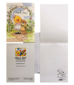 Tarjeta de felicitación de agradecimiento con sobre para el jardín de Suzy's Zoo Suzy Ducken y Willie Bear Hug