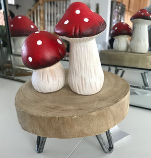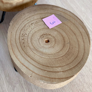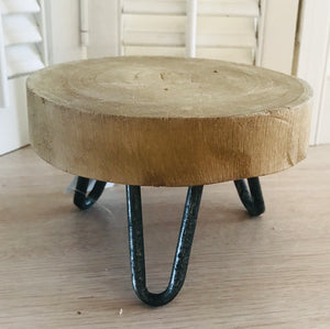 Soporte de exhibición de rodajas de madera de estilo rústico de cabaña o granja de 6" con patas de metal para decoración del hogar