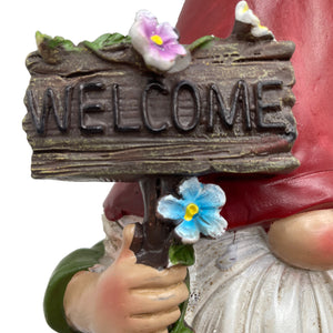Estatua de gnomo con letrero de bienvenida de resina de Red Hat de 9 pulgadas, decoración para el hogar y el jardín, aspecto tallado