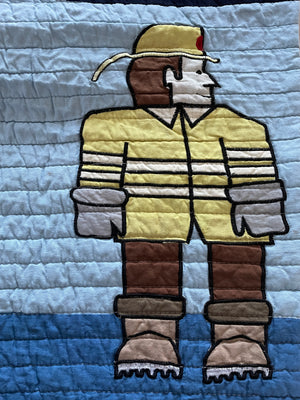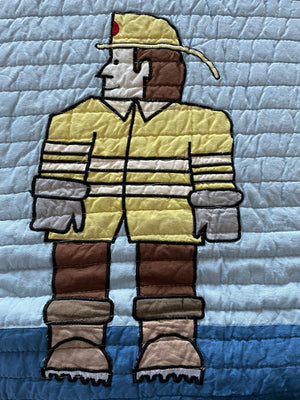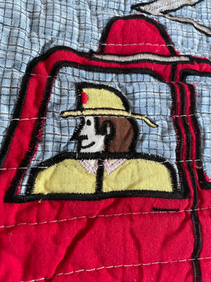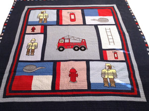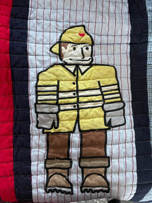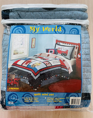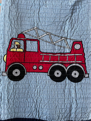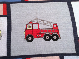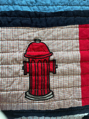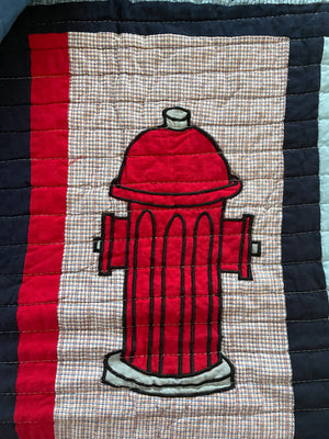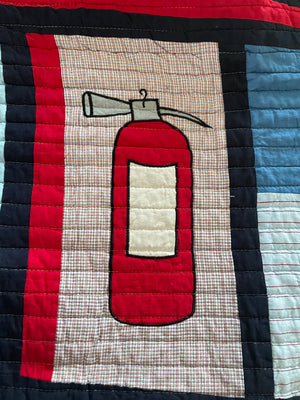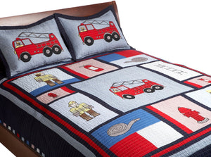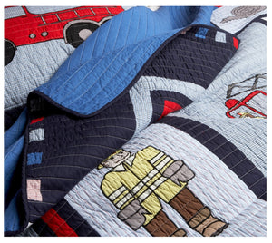 Juego de edredón doble con escalera y camión de bomberos rojo de bombero, ropa de cama bordada de diseñador para niño, colcha de ALGODÓN azul