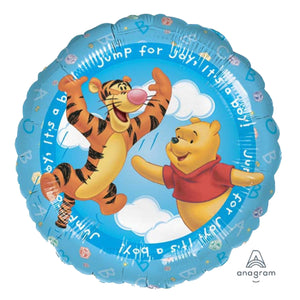 Globo azul para fiesta de bienvenida al bebé de 18" con Winnie The Pooh y Tigger It's A Boy