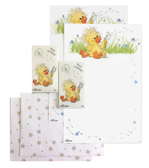 Juego de papelería de 3 piezas con los mejores deseos del pato Witzy del zoológico de Little Suzy: 6" x 9" con sobre y calcomanía