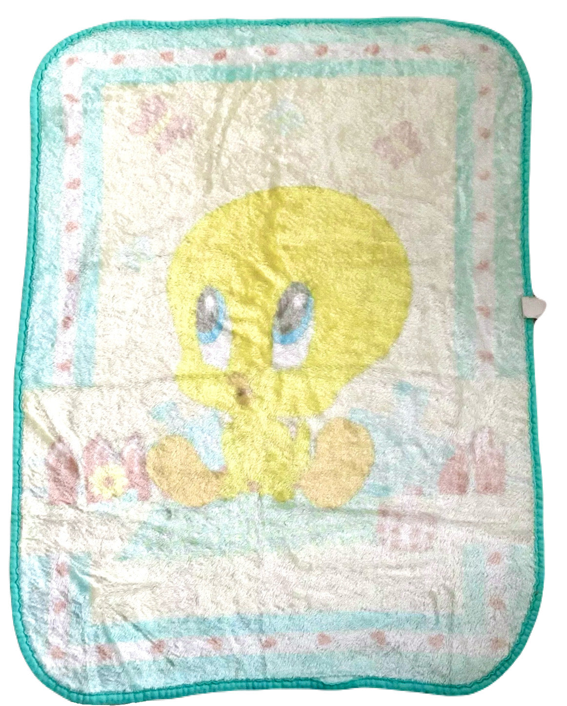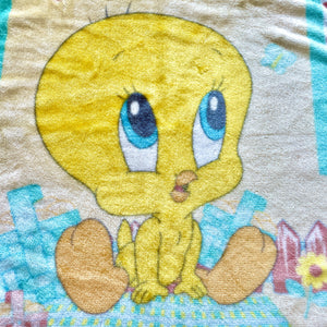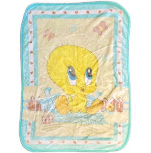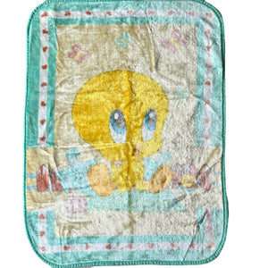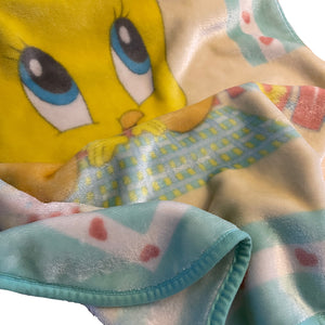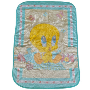 Manta de felpa para cuna de bebé vintage de Tweety Bird de Looney Tunes, 26" x 35", color amarillo, aguamarina y azul celeste