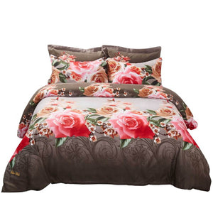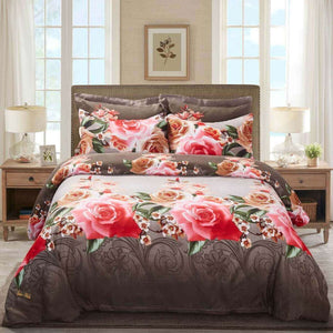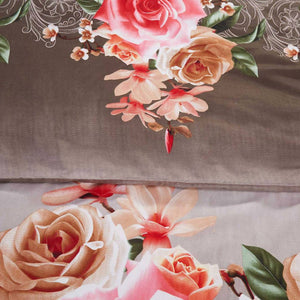 Juego de ropa de cama con funda de edredón y diseño floral de rosas rosas y melocotón, tamaño Queen o King
