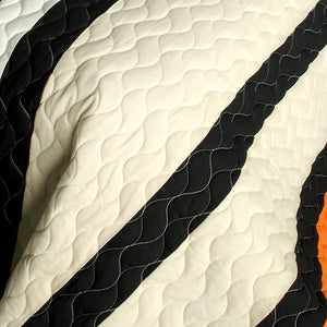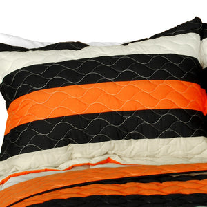 Juego de edredón moderno para niños con rayas en color negro y naranja, tamaño matrimonial o queen, cubrecama acolchado