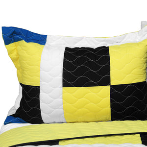 Juego de edredón para adolescentes de tamaño matrimonial o queen con cuadros amarillos, negros, blancos y azules, colcha moderna de gran tamaño