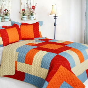 Juego de edredón para adolescentes tamaño matrimonial o queen con diseño geométrico en rojo, naranja, azul y tostado