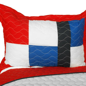 Juego de edredón geométrico moderno con diseño entrecruzado en rojo, azul, blanco y negro para adolescentes, tamaño matrimonial o queen