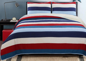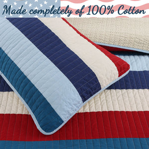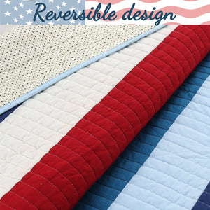 Juego de edredón elegante para cama tamaño queen o matrimonial con rayas patrióticas de algodón, rojo, blanco y azul marino, para niño o adolescente