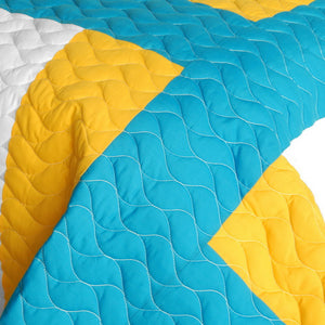 Juego de edredón para adolescentes, tamaño matrimonial o queen, con rayas turquesas, azules, amarillas y blancas, cubrecama geométrico moderno