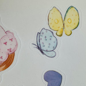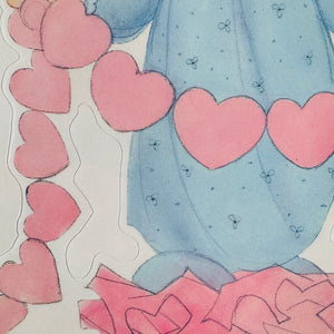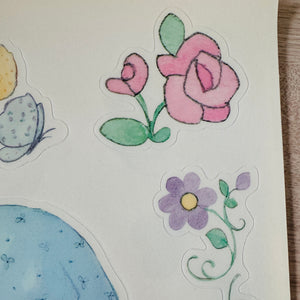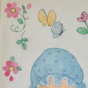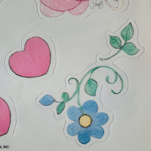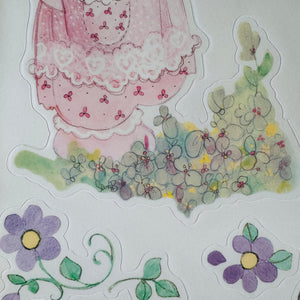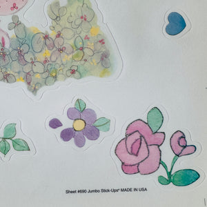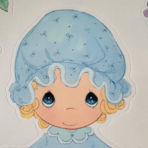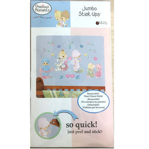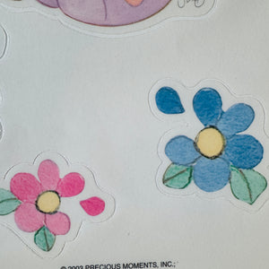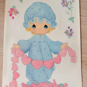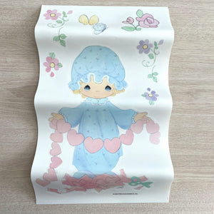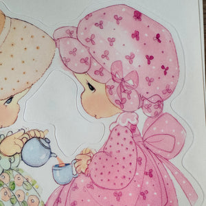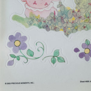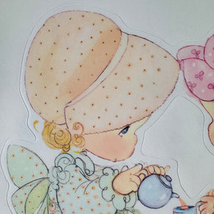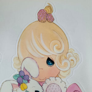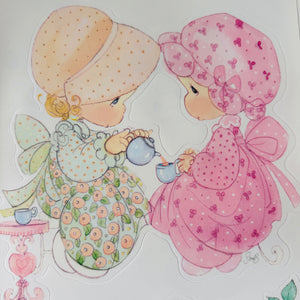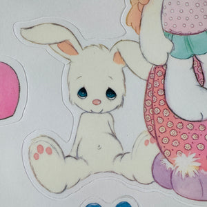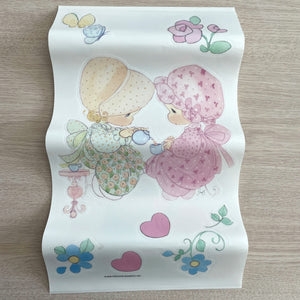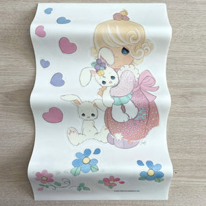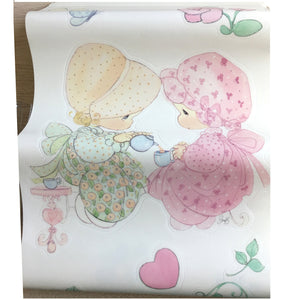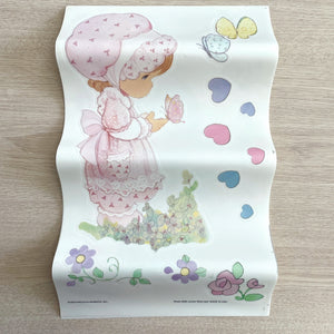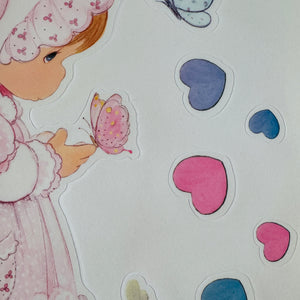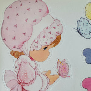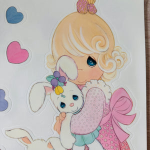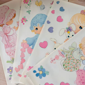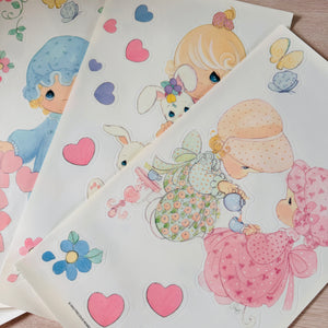 Calcomanías de pared vintage New Precious Moments Girls de 10" x 18", 4 hojas para despegar y pegar, conejitos, mariposas y corazones para la hora del té
