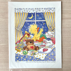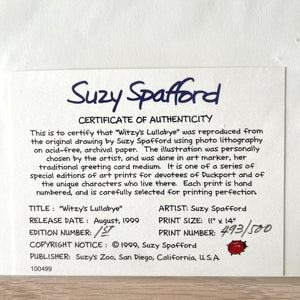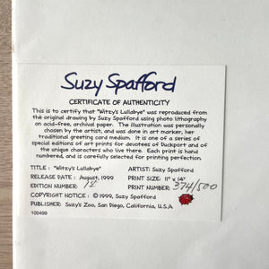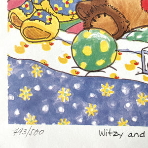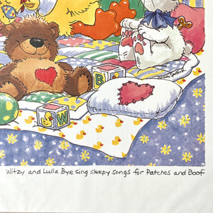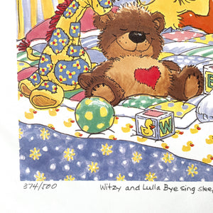 Póster de pared coleccionable Little Suzy's Zoo Bedtime Baby Witzy's Lullabye, edición limitada, vintage, 1999: Witzy Duck Bear Bunny Giraffe, decoración de pared