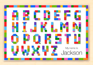 Mantel individual personalizado para niños con bloques de construcción coloridos de 18" x 12" con alfabeto - Custom USA