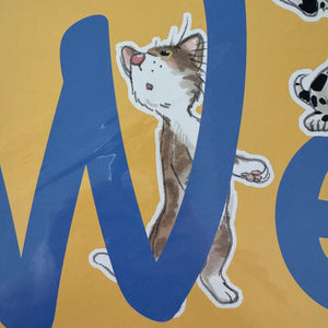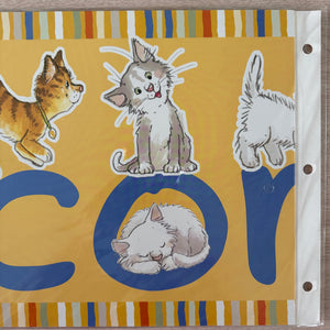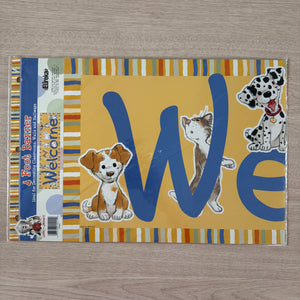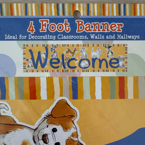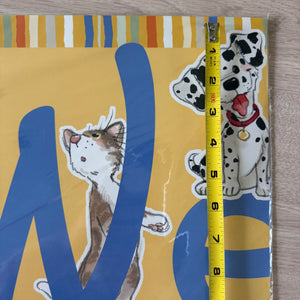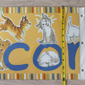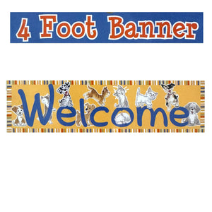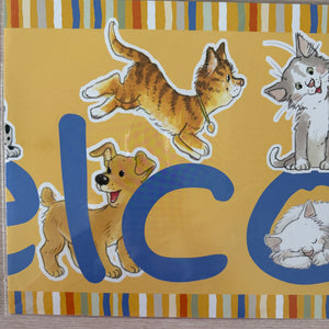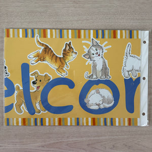 Banner horizontal de bienvenida de 4 pies con gatos y perros Wags & Whiskers de Suzy's Zoo vintage, 2005, producto para maestros de aulas escolares
