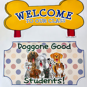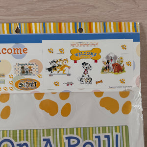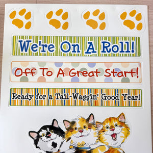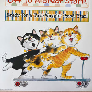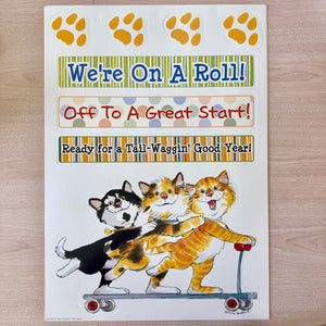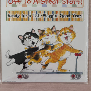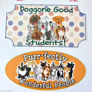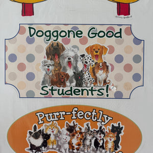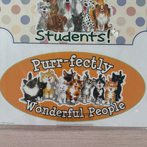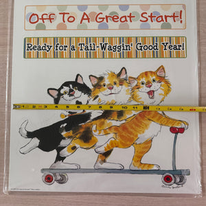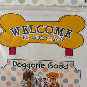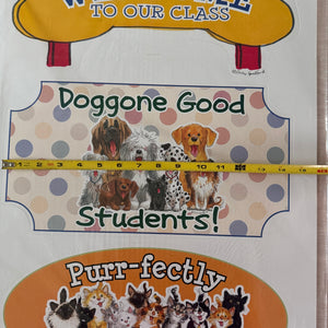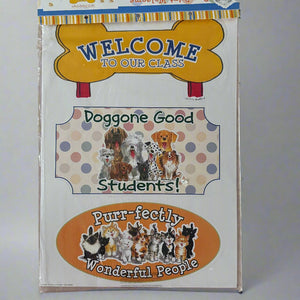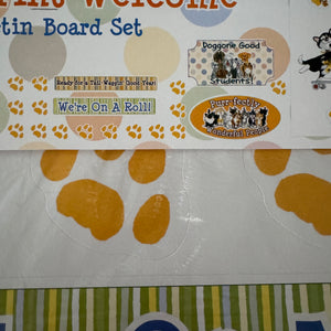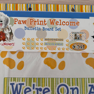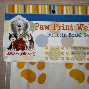 Pizarra de anuncios grande vintage, nueva y rara, con huellas de patas de perros y gatos de Suzy's Zoo Wags & Whiskers, "Bienvenido a nuestra clase", producto para el aula del docente