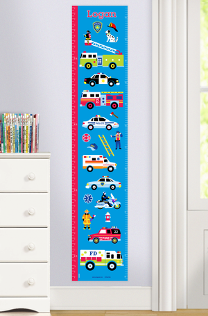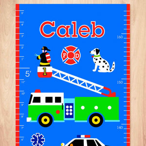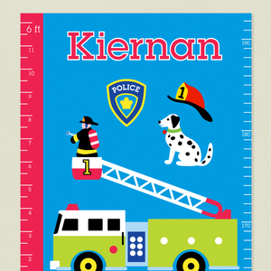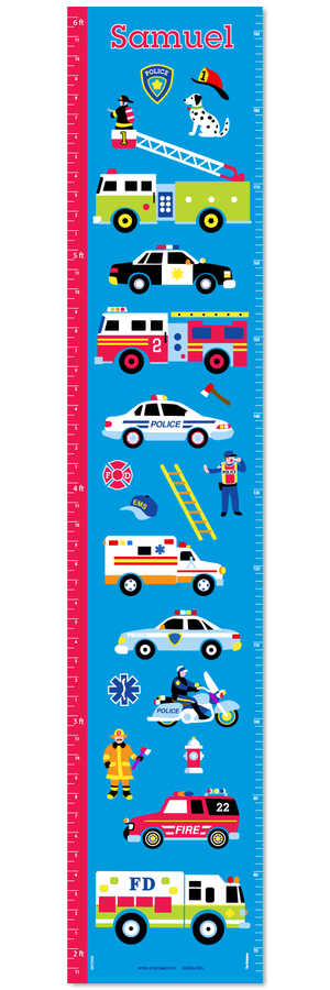Camión de bomberos, coche de policía, ambulancia, héroes de rescate, tabla de crecimiento de altura personalizada, autoadhesiva o en lienzo