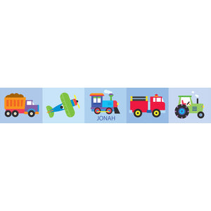 Borde de papel tapiz de pared autoadhesivo personalizado para niños, trenes, aviones, camiones y niños