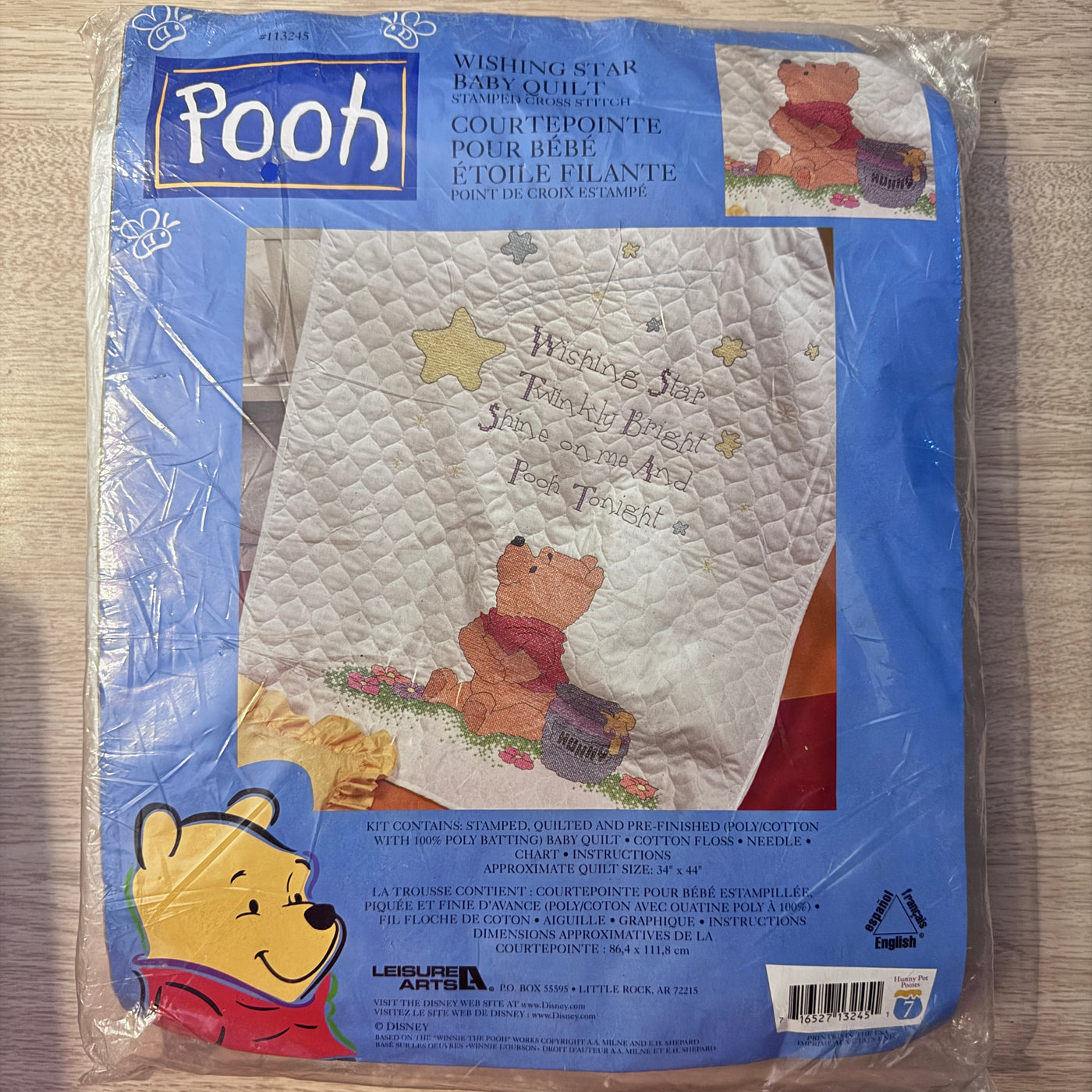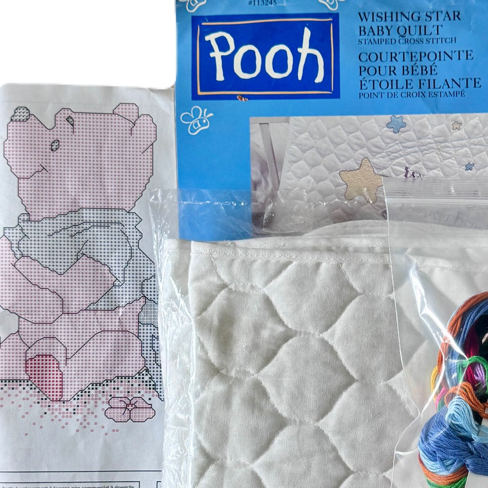 Kit de edredón y manta para cuna de bebé, diseño vintage, nuevo y raro, con estampado de oso Winnie The Pooh de Walt Disney, con punto de cruz y tarro de miel, regalo para bebé, instrucciones de patrón en PDF, 34" x 43"