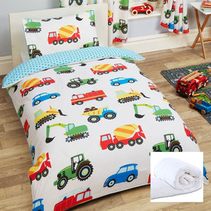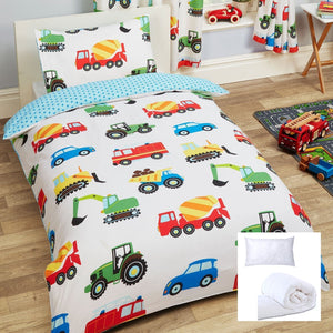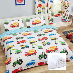 Automóviles y camiones Construcción Transporte Vehículos Ropa de cama para niños Juego de funda de edredón y edredón para niños pequeños Cama matrimonial o cortinas