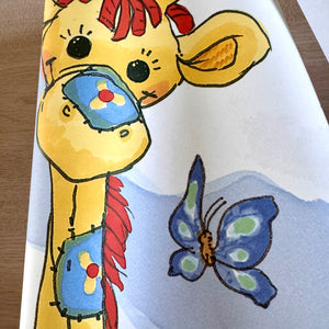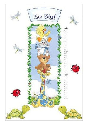 Mural de pared con gráfico de altura y crecimiento para niños del zoológico de Little Suzy: animales bebés, pato, conejito, oso, jirafa; libélulas, mariquitas y tortugas pegadas previamente para el hogar, la guardería o el preescolar