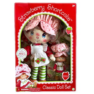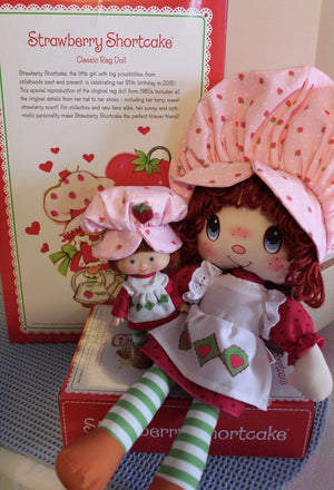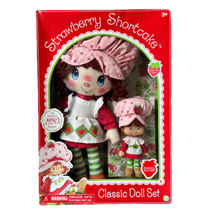 Conjunto de muñecas de 2 piezas de Strawberry Shortcake con aspecto retro clásico y poco común: reproducción de muñeca de trapo de 14" y muñeca de 6" de la década de 1980: caja de edición de coleccionista con dos muñecas 2017