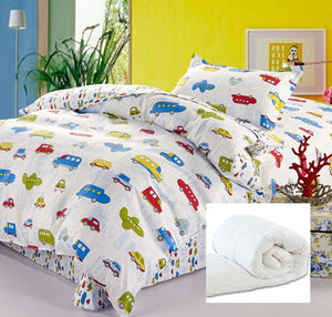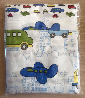 Juego de funda nórdica para niños con diseño de coches y aviones de la ciudad y transporte, color blanco, rojo y azul
