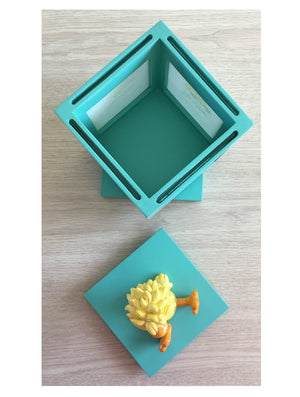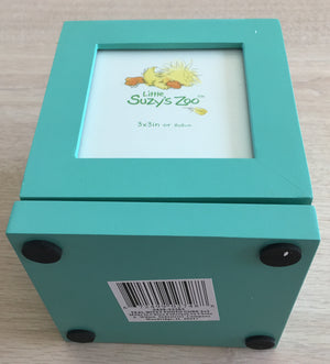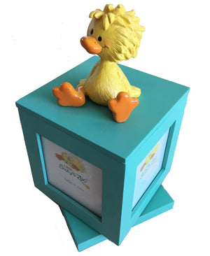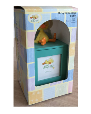 Cube photo rotatif unique Little Suzy's Zoo Witzy Yellow Baby Duck Teal Blue/Green Keepsake Cadre photo pour chambre d'enfant 3,25" x 3,25"