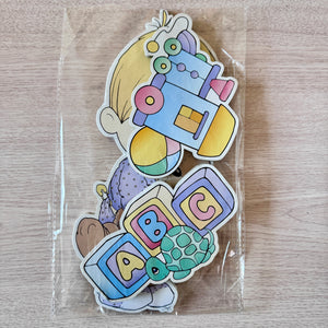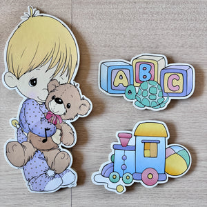 Ensemble de 5 pièces d'art mural vintage Precious Moments pour chambre de bébé, autocollants décoratifs pour garçon et fille avec jouets, 2001