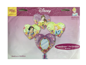 Ballon géant de fête d'anniversaire Connext à 4 cœurs Disney Princesses de 33 pouces - Blanche-Neige, Belle, Aurore